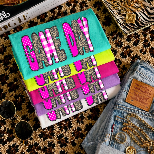 Game Day Leopard Glitter, Gingham & Dot in Bright Pink Digital Design, PNG
