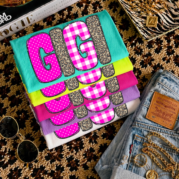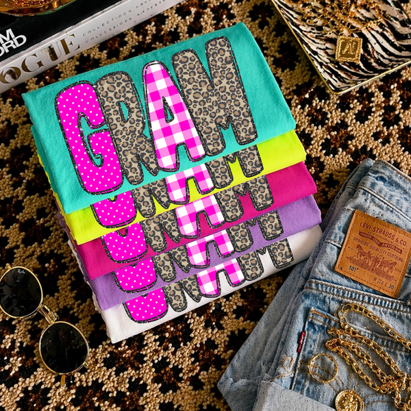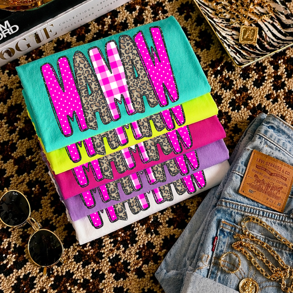 Mamaw Leopard Glitter, Gingham & Dot in Bright Pink Digital Design, PNG
