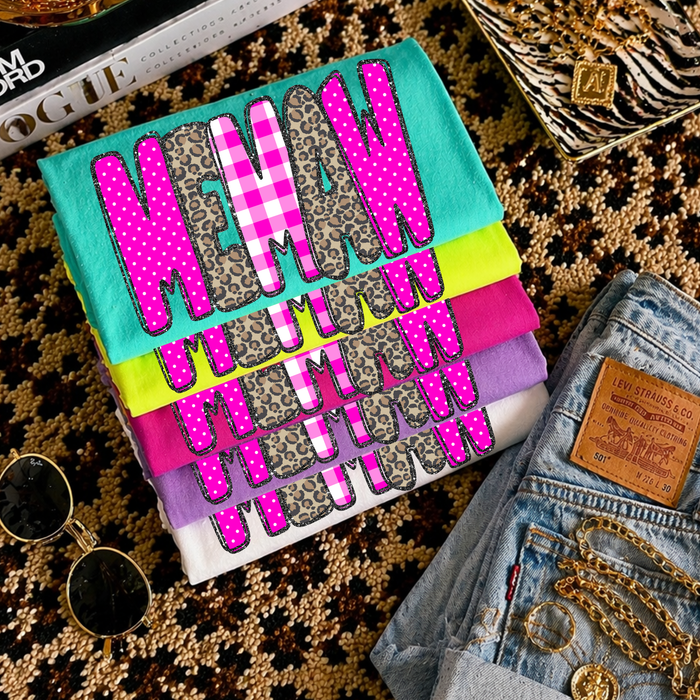 Memaw Leopard Glitter, Gingham & Dot in Bright Pink Digital Design, PNG