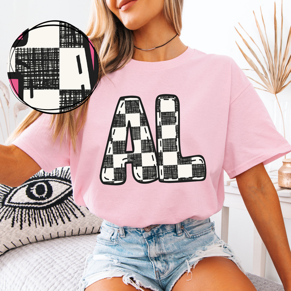 AL Alabama Bubble Stitch Distressed Checkers Black White Digital Design, PNG