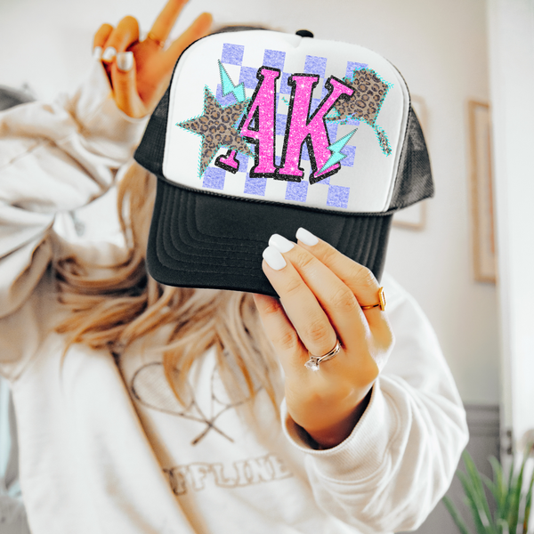AK Alaska Leopard Checkered Glitter Star & Stitched Bolt & State in Bright Summer Colors Digital Design, PNG