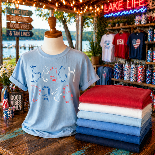 Beach Days Polka Dots in Red, White & Blue Patriotic Digital Design, PNG