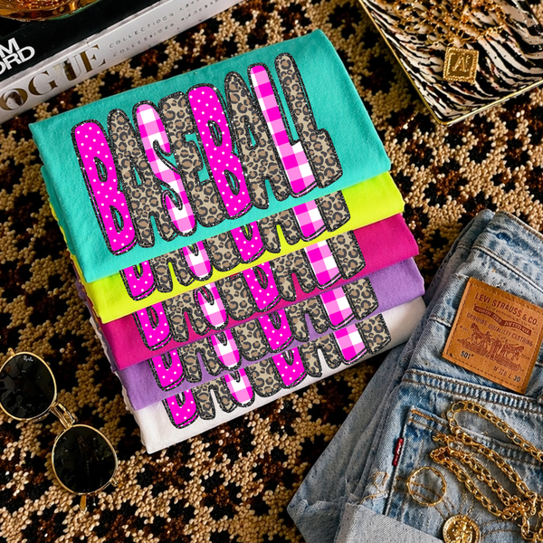 Baseball Leopard Glitter, Gingham & Dot in Bright Pink Digital Design, PNG