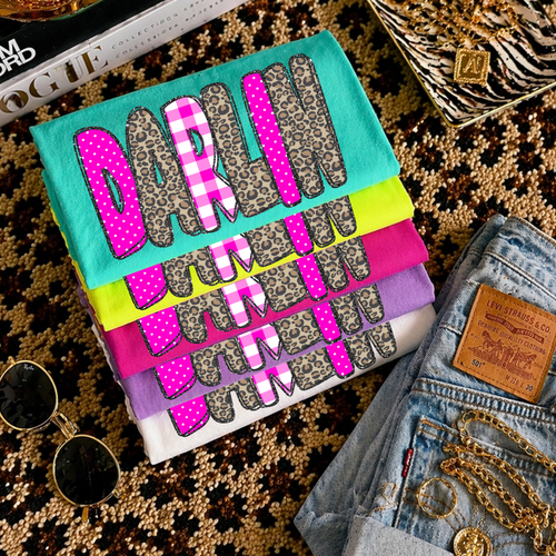 Darlin Leopard Glitter, Gingham & Dot in Bright Pink Digital Design, PNG
