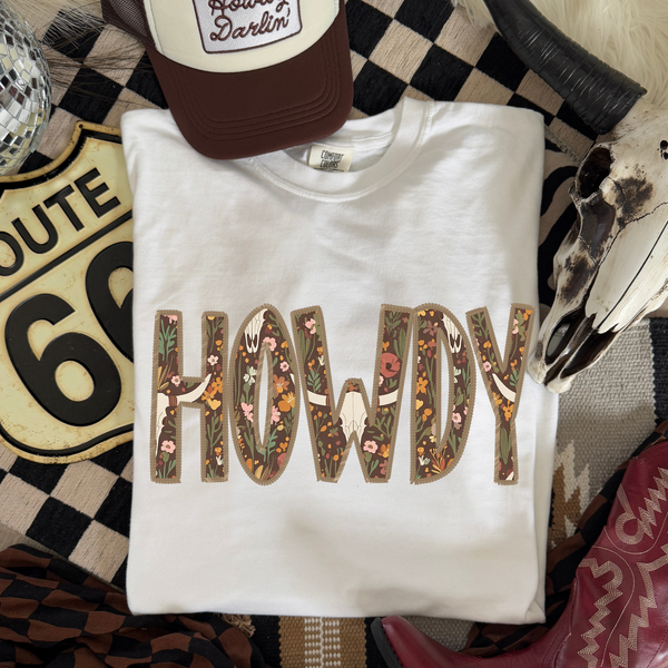 Howdy Rope Outline Floral and Skull Western Shadow Digital Design, PNG