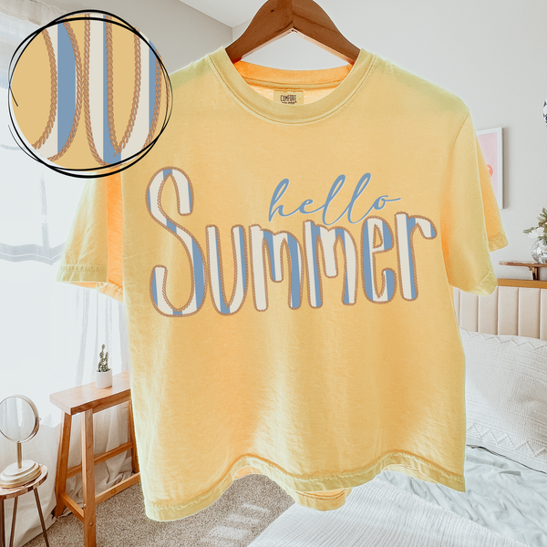 Hello Summer Nautical Striped Rope Outline Digital Design, PNG