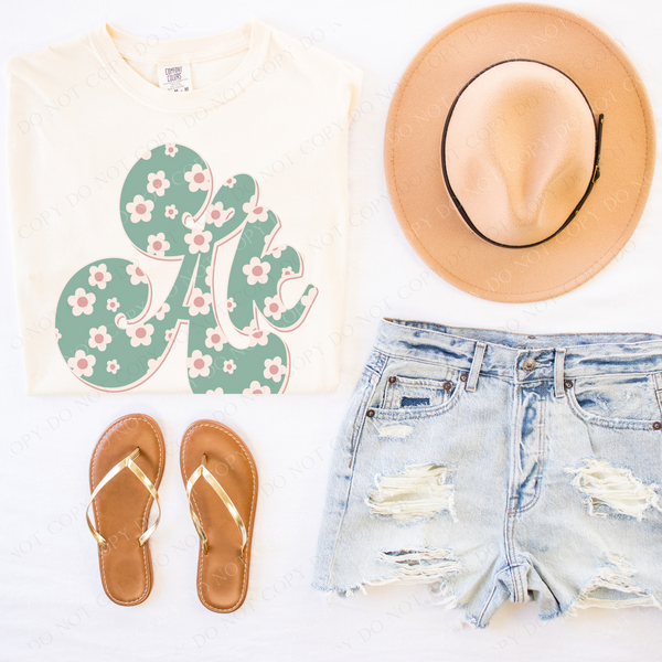 AK Alaska Vintage Floral Green, Pink & Cream Digial Design, PNG