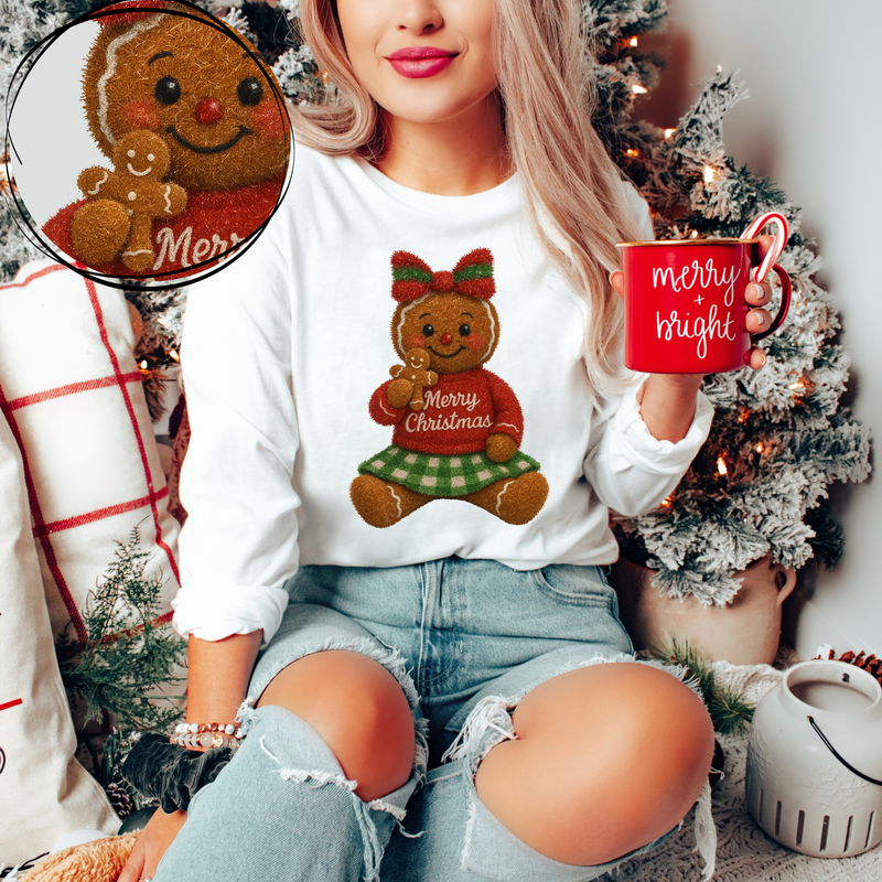 Cute Gingerbread Girl Faux Tinsel Christmas Digital Download, PNG