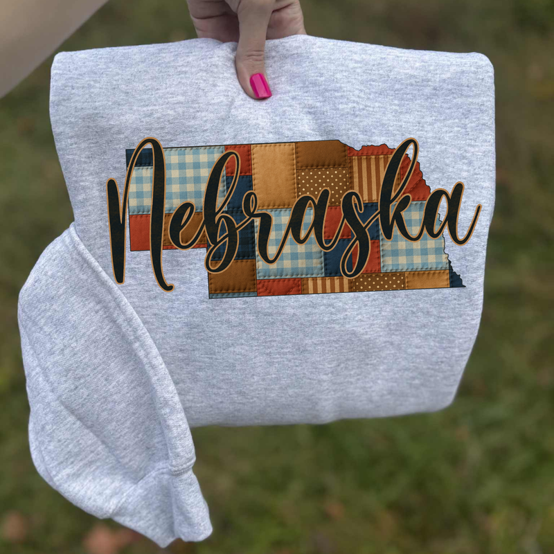 Nebraska NE Autumn Pumpkins Quilted Distressed Digital Design in Browns, PNG